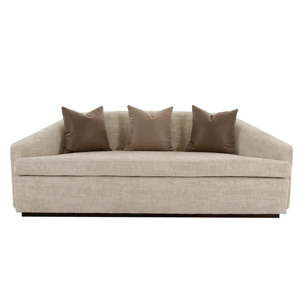 The elegance and simplicity of the Abreeyah Sofa is what every stylish and modern home needs. Its minimalistic shape and the neutral-toned throw pillows allow it to match most decor styles and color palettes. Its sturdy kiln-dried pine frame and velvet fabric ensure comfort and durability.