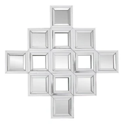 Featuring faceted, diamond-shape mirrors arranged in a windowpane style, this mirror makes a striking focal point in any room. D-rings are affixed to the back of the mirror so it is ready to hang in a square or diamond orientation.