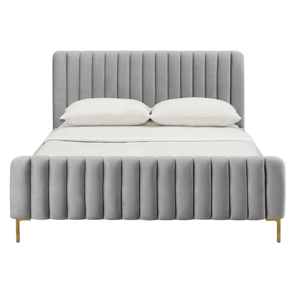 A modern take on a classic silhouette, our Catalina bed features clean-lined channeling, sumptuous velvet upholstery, and polished gold legs.