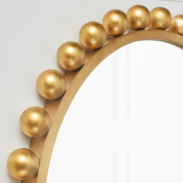 A standout addition to any space, this mirror shows off a bauble border and metallic gold finish.
