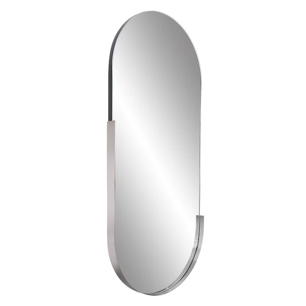 Our Dante Capsule Mirror is the definition of minimalistic style. With the idea that less is more, this mirror features a long, oval shape and is partially trimmed in a flat, stainless steel frame in a striking polished black stainless steel. This design provides a contemporary flair that is sure to be that conversation piece. D Rings are affixed to the back of the mirror making it ready to hang right out of the box.