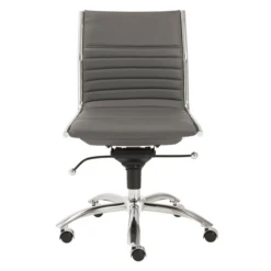 Designed with a chromed steel frame and channeled faux-leather upholstery, this desk chair brings both style and function to the home office. Constructed in one piece, its seat and back interior is wrapped in flat bungie banding for all-day comfort, while casters make the chair easy to move without damaging your floors.