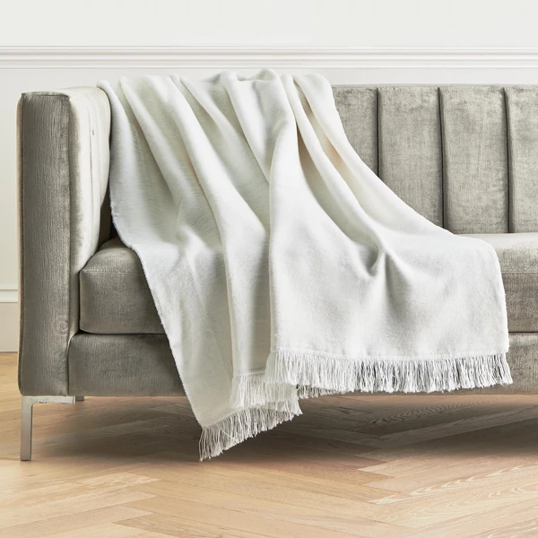 Our Della throw is a cozy classic, the perfect gift or go-to for any nook. Long enough to keep toes covered, it’s woven in a luxe Cotton/Acrylic blend and thoughtfully finished with softly fringed edges.