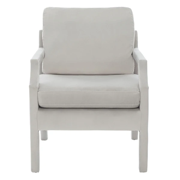 Sleek and stylish, this armchair is framed in sturdy kiln-dried hardwood with notched arms and a clean-lined silhouette that is fully upholstered in plush velvet. High-density foam-filled cushions ensure lasting comfort.