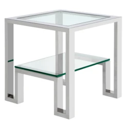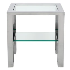Duplicity collection is designed with form and function in mind. Constructed of stainless steel and glass, with a floating bottom shelf for clean and simple storage.