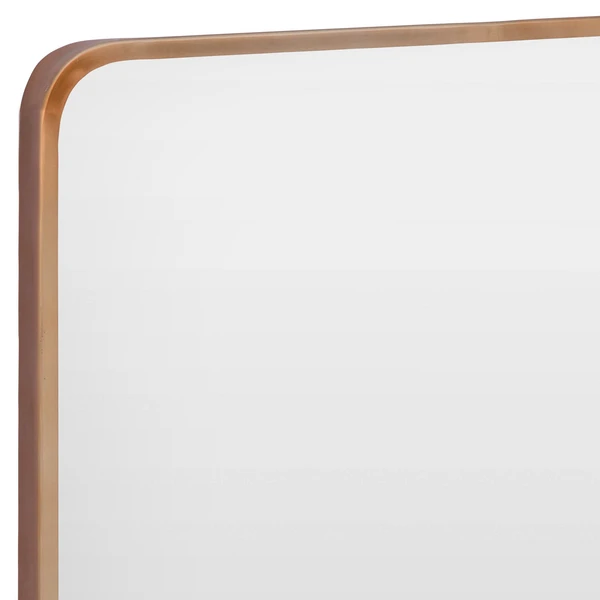 Our Ellis Mirror features a rectangular mirror with oval edges in a thin antique brass frame. The hand crafted details produced by a skilled artist lends itself to a unique technique and will vary slightly.