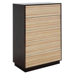 Tantalizing tropical flair breezes into your décor with this coastal-chic Emani Chest. The black wood frame is a perfect juxtaposition to its five geometric, natural-finished cane drawers, providing striking textural depth and lasting style in any interior.