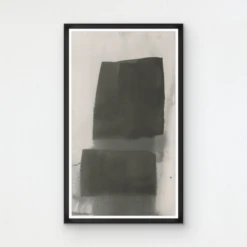 A standout addition to any space, this abstraction from artist Dawn Sweitzer showcases remarkable balance and use of negative space. Printed on paper, this piece is displayed under glass in a black frame.