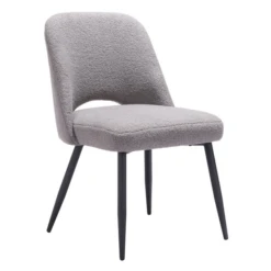 The Faye Dining chair has powder coated steel legs and is wrapped in a soft textured polyester fabric. This chair has a mixture of soft boho textures with a modern shape. It looks great in any space, dining room, bedroom, or resturant bar.