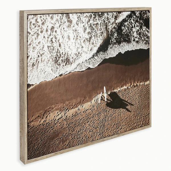 Gold Coast is a gallery-wrapped canvas set in a natural wood tone floater frame with champagne edges.
