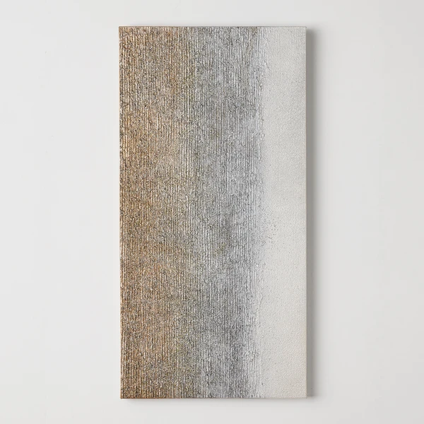 Golden Cliff is a 100% hand-painted canvas with hand-applied glitter embellishment.