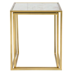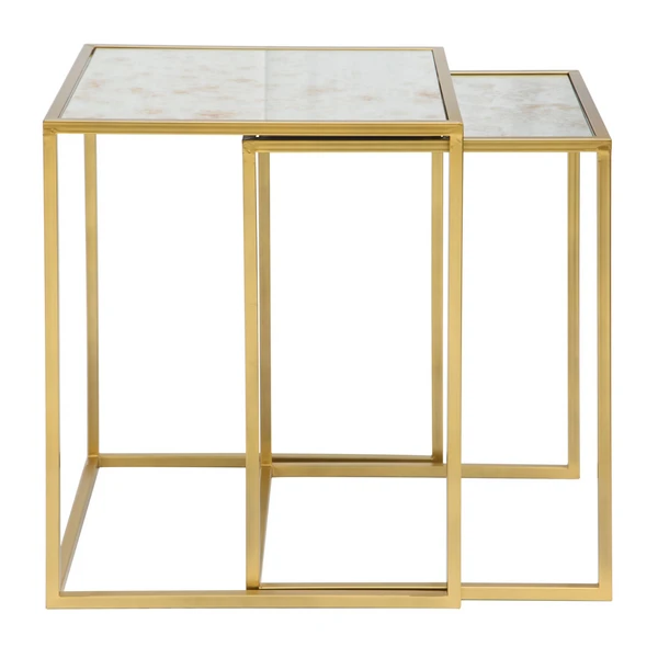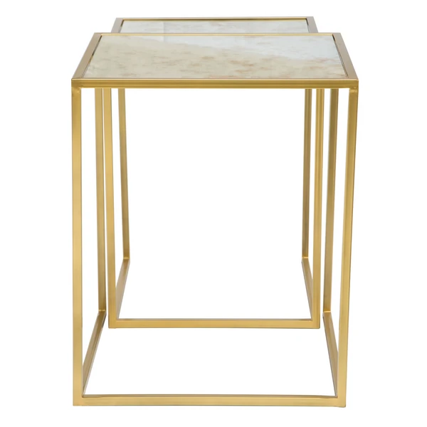These nesting cube tables feature antique mirror tops and a gold frame. Perfect for small space solutions, they can be used separately or together.