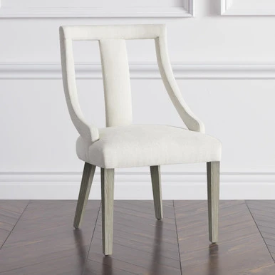 With its sleek silhouette and cutout back, our Jade chair is a standout addition to the dining room, while its plush foam-and-fiber fill and kiln-dried hardwood frame offer long-lasting comfort and durability. Shown in Maxwell Linen Alpaca.