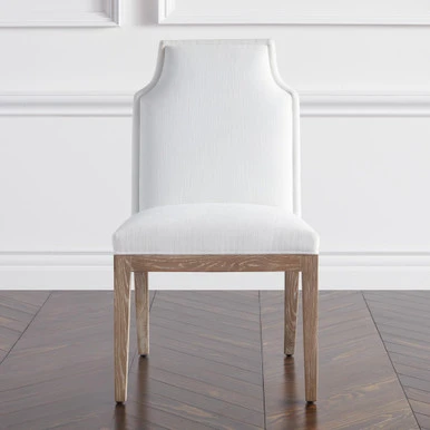 The notched back adds a chic, unexpected element to our clean-lined Jasmine chair, while the amply padded seat cushion provides plenty of comfort. Shown in Maxwell Linen Oyster.