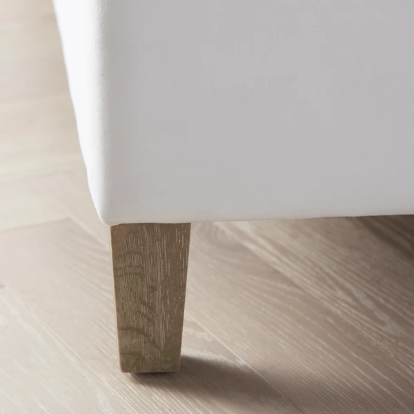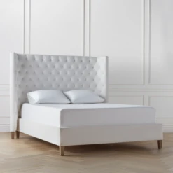 Inspired by designs found in the chicest Parisian hotels, our Jen Collection makes a glamorous, refined statement in the bedroom. Framed in kiln-dried hardwood, each features a gently curved wingback-style headboard and neatly tailored upholstery with hand-applied button tufts in a lavish diamond pattern. Shown in Bella Velvet White.