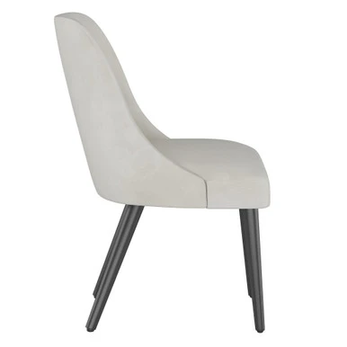 The simple silhouette of the Jessa chair allows it to sit with any table. Available in multiple fabrics to customize the look of your space. Shown in Velvet Light Grey.