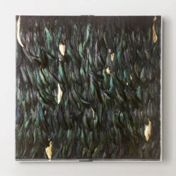 Perfect for adding texture and drama to your wall, this artful arrangement of black feathers is embellished with gold accents and displayed in a clear acrylic shadowbox frame.