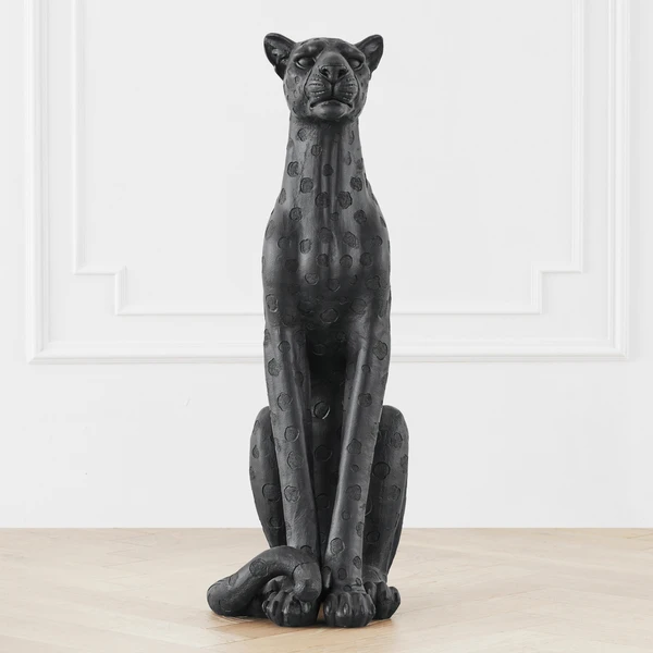 Our regal Leopardo figure stands for the height of elegance. Sculpted in lightweight resin, this 3-foot tall gold statue reigns the room.