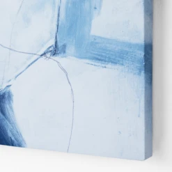 Shades of blue are celebrated in the series entitled Light Taming. These dynamic abstract pieces are perfectly square and engage the eye in a remarkable way. Created with giclee on canvas, each piece has an image brush gel finish. Hand-painted strokes of the original image are applied with a brush. 1 of 2 in a series.