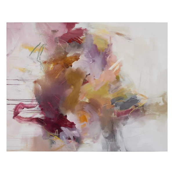 This beautifully layered abstraction from  artist Jean Kenna showcases soft washes of blush and plum hues. Printed on gallery-wrapped canvas with a hand-applied image brush gel finish for added texture. Hangs both vertically and horizontally. Unframed.