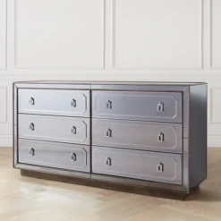 Designed with clean lines, beveled mirror paneling, and a graphite finish, our Maddox Collection delivers sleek style to the bedroom with a modern, masculine edge. Polished nickel ring pulls and black drawer interiors complete the luxe look.