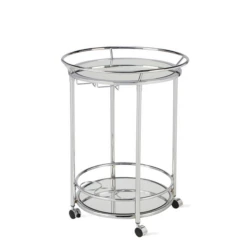 Entertain guests with our modestly-sized Manhattan Bar Cart, and embrace a portable fixture on which to arrange your libations. Featuring a mirrored tray top and bottom set upon casters, this cart has been finished in chrome, providing a lustrous sheen. The lower tray offers a place for three bottles to be held securely as you wheel your drinks to the chosen destination.
