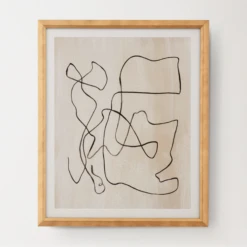 Our Maze art series features abstract ink scribbles on a cream background with white border and a simple natural wood frame.