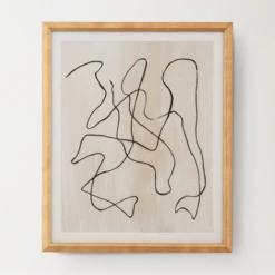 Our Maze art series features abstract ink scribbles on a cream background with white border and a simple natural wood frame.