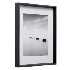 • Print set under glass with a white mat and solid wood frame with a black finish