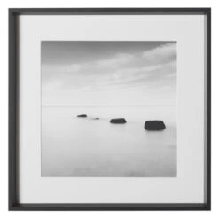 This print from photographer Hakan Strand beautifully captures a beach in black and white. Set off with a white mat, this piece is displayed under glass in a black frame.