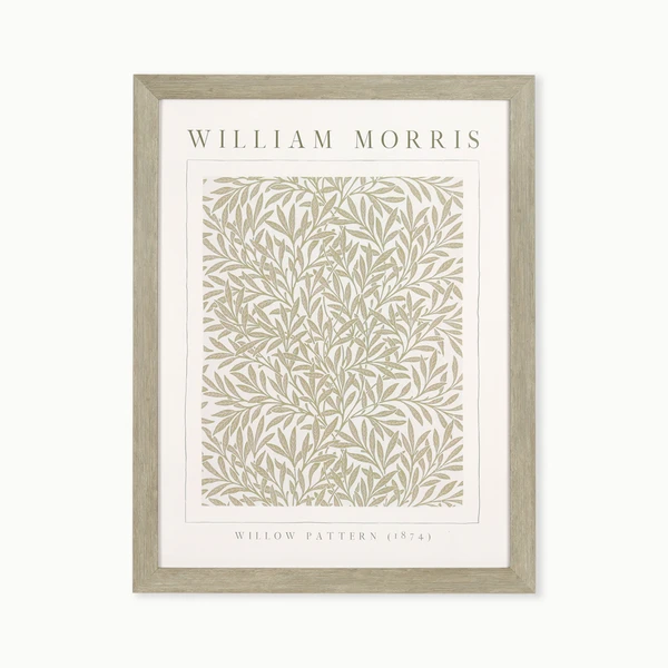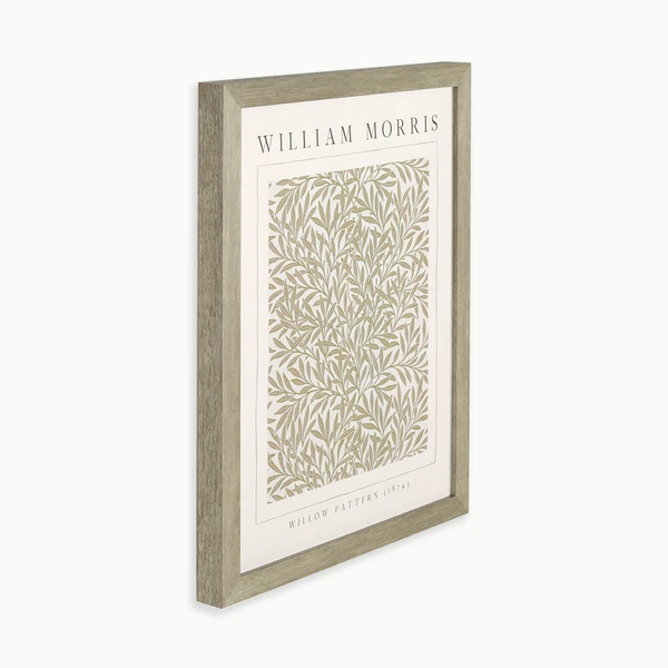 Morris Willow Pattern is a framed graphic under glass with a light wood tone textured molding frame.