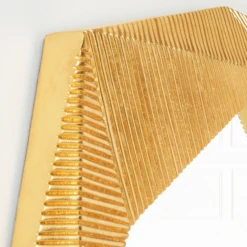 A standout addition to any space, this mirror shows off a mod, faceted frame with a textured gold finish.