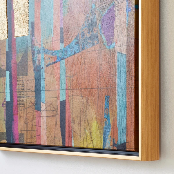Printed on canvas with hand-applied impasto gold embellishments and set in a gold frame, this striking work from Nikki Chu lends a modern mood and vibrant color to the wall.