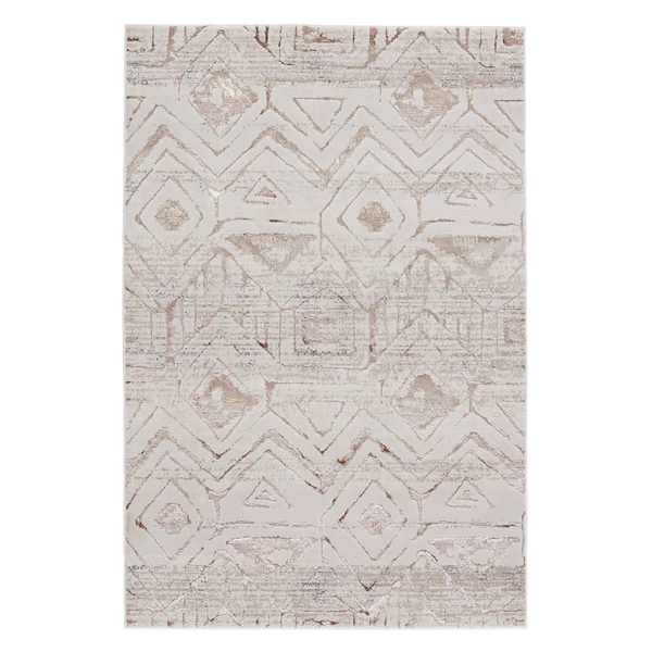 Designed by Nikki Chu, this collection showcases an eye catching sheen that makes the global motif design pop! This collection contains a metallic polyester fiber that features a neutral color scheme including cream, gray, taupe, and bronze color that adds a touch of subtle glamour in any room.