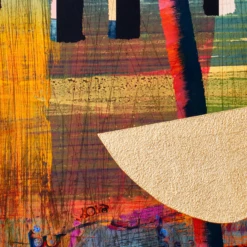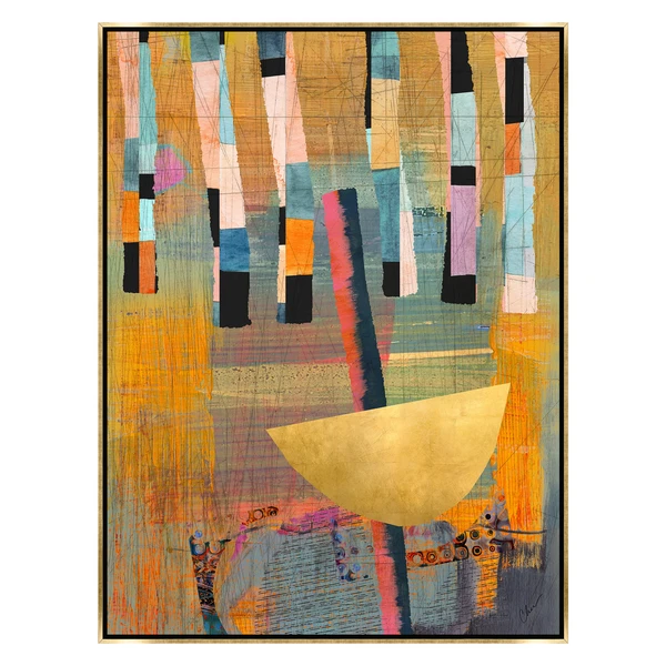 Printed on canvas with hand-applied impasto gold embellishments and set in a gold frame, this striking work from Nikki Chu lends a modern mood and vibrant color to the wall.