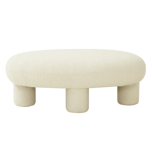 Plush bouclé fabric adds to the cozy-chic vibe of this comfortably cushioned ottoman.