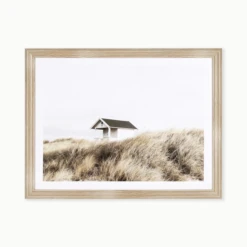 Ocean View 1 is a framed graphic under glass with a light blonde angled profile frame. 1 of is a series.
