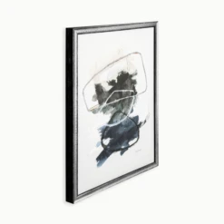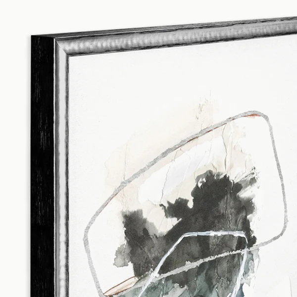 Overlap is a gallery wrapped canvases with hand-applied pallet knife embellishment and set in black with hammered silver (2 tone) floater frames. Set of 2.