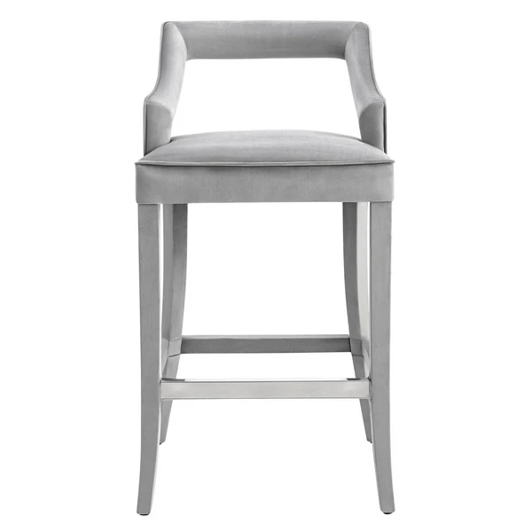 Boasting a sleek and modern silhouette, our Petra counter stool features luxurious velvet upholstery and stylish cutouts along the back and arms for an open and airy design.