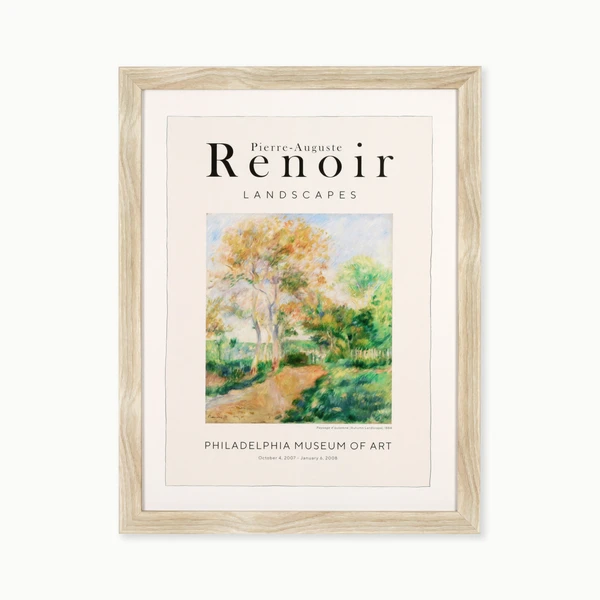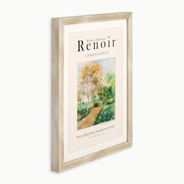 Renoir Landscapes is a framed graphic under glass with a blonde textured molding frame.