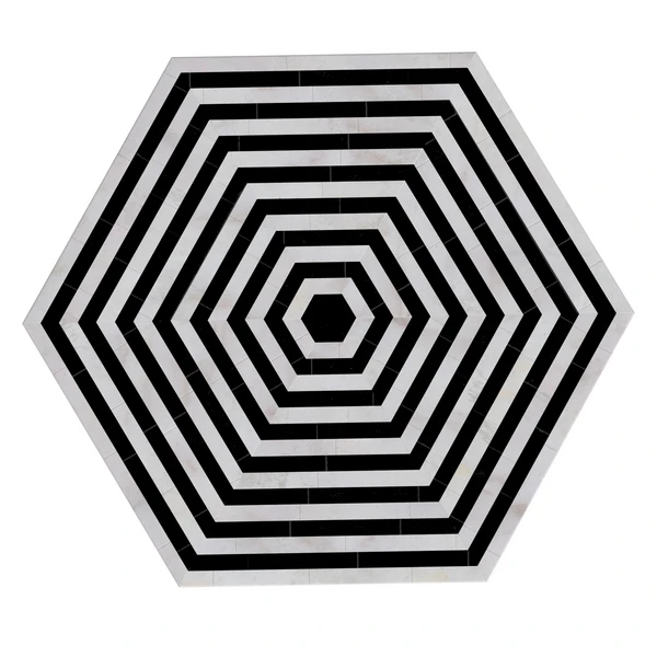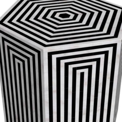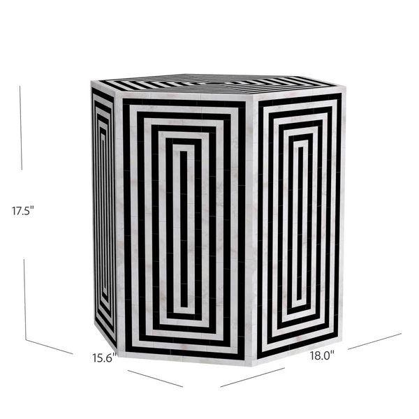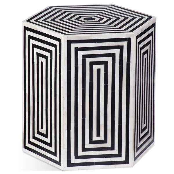 The Rita Accent Table is hexagon in shape with alternating pattern of black and white bone.