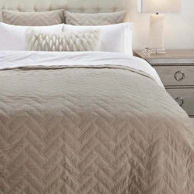 Get cozy in our luxe cotton velvet Rivera bedding.The herringbone quilting pattern is inspired by avant garde subway tile design. What’s more, these swoon-worthy velvety quilts are actually machine-washable.
