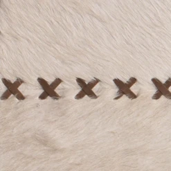 Simple yet impactful, this mirror’s round frame is covered in luxe off-white hair-on hide with brown leather whip-stitched accents.