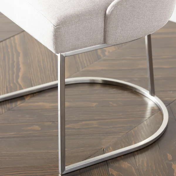 Our most architectural chair of the season is made all the more edgy with brushed stainless steel legs and durable, spill-friendly fabric that handles your high-maintenance friends. Shown in Livesmart™ Evolve Roxboro Frost.
