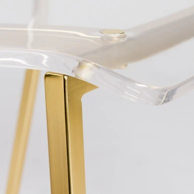 Sleek and modern, this pair of dining chairs flaunt beautifully contoured clear acrylic seats atop clean-lined steel frames finished in matte, brushed gold.