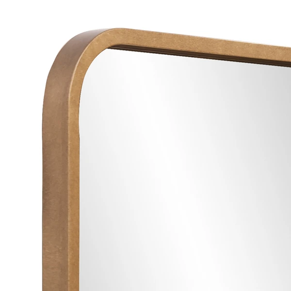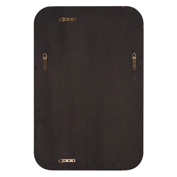Featuring rounded corners and a mottled, antiqued bronze finish, this mirror’s simple yet sophisticated design lends timeless style to any wall.