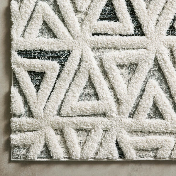 This textural geometric rug, power-loomed of 100% polypropylene pile, contains a “cloud like” feel and is built for long-lasting durability.