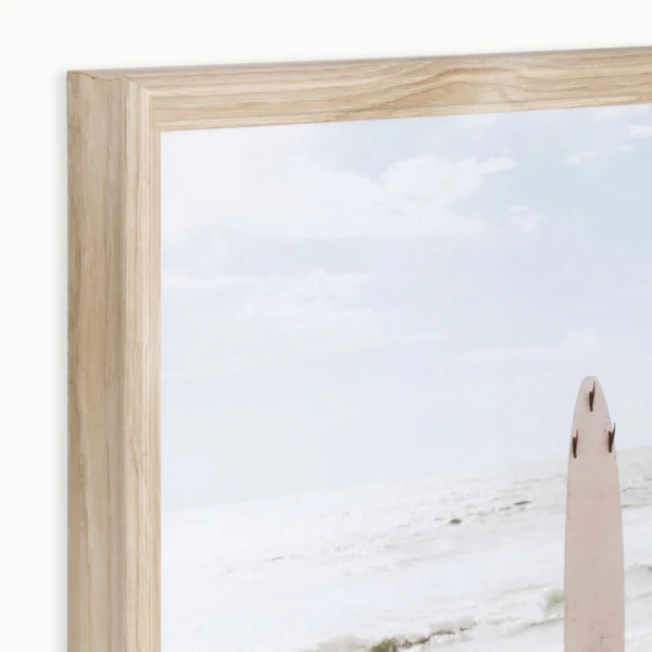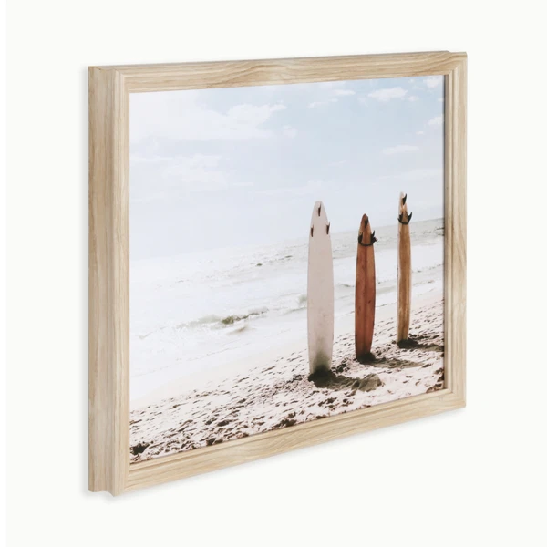 Surf’s Up is a framed graphic under glass with a light blonde angled profile frame.