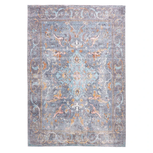 Featuring a printed medallion design inspired by antique carpets, this rug adds a striking, traditional note to any space.