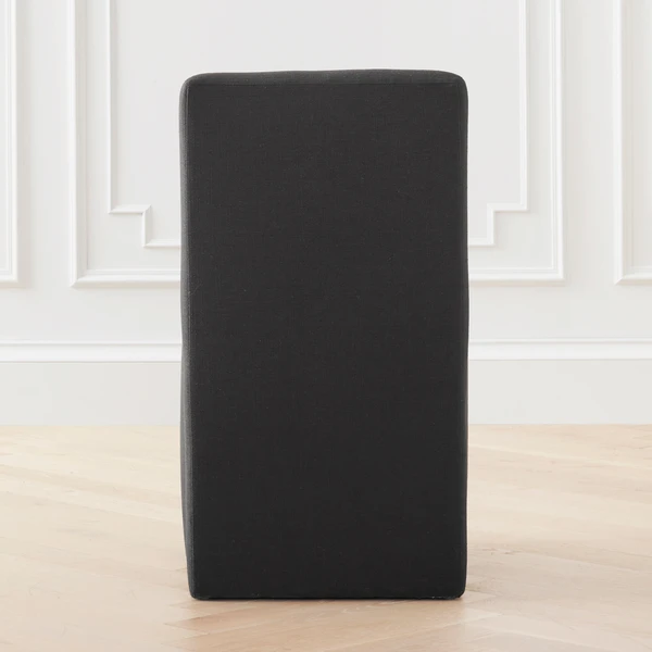 Poised for comfort, this cushy dining chair is simple in design and totally chic. Wrapped in black linen fabric, it is the perfect compliment for your modern space.